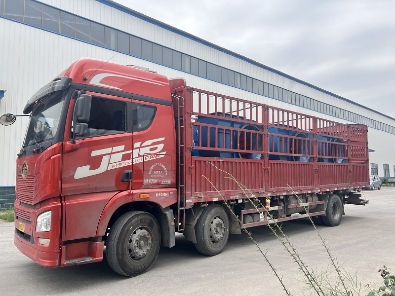 滿載著 4-73 窯爐系列離心風機的貨車緩緩駛出倉庫,目的地 —— 商丘。這款風機經(jīng)過嚴格的質量檢測和調(diào)試,終于踏上了前往商丘的旅程。